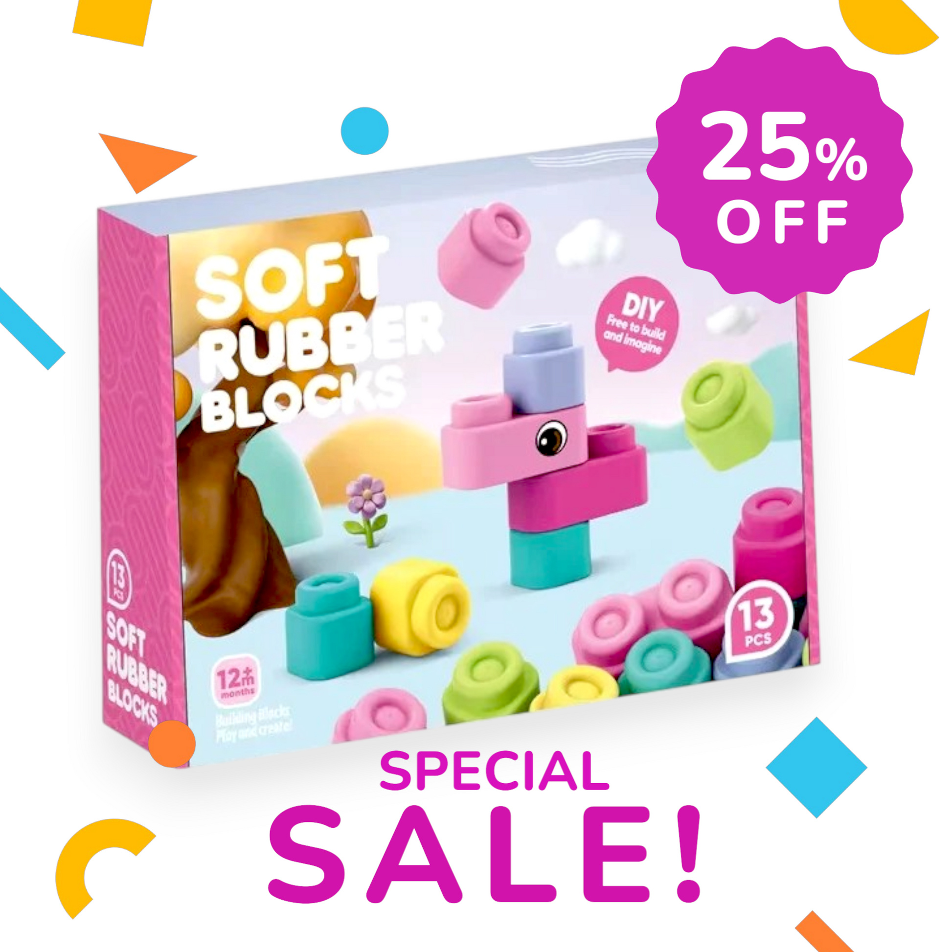 Cuburile moi din cauciuc sunt alegerea perfectă pentru micii exploratori. Cu un design sigur, culori vii și o textură prietenoasă pentru bebeluși, aceste cuburi susțin dezvoltarea naturală a copilului prin joacă.