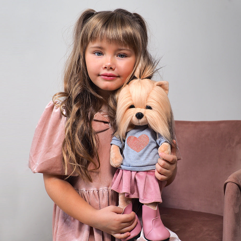 Cu Setul de hăinuțe premium Stil Urban Lucky Doggy, cățelușele Lucky Yoyo și prietenele ei își pot etala un look modern și jucăuș. Ținuta include o bluză gri cu inimioară strălucitoare, o fustiță roz plisată, o pereche de ghetuțe chic și un rucsac roz asortat, perfect pentru a completa outfitul.