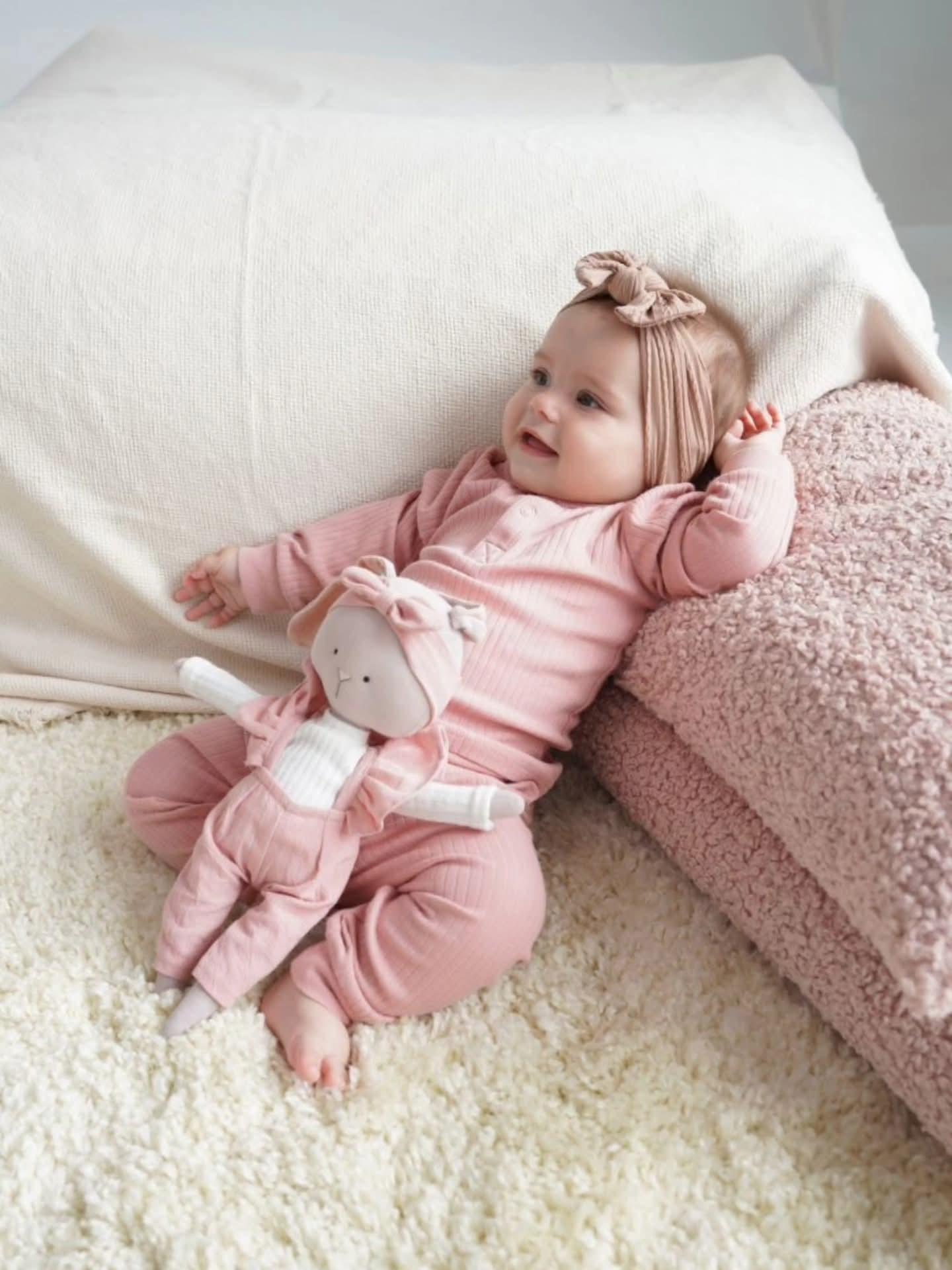 💖 Lucy adoră florile și culoarea roz – salopeta ei delicată te face să zâmbești din prima clipă!