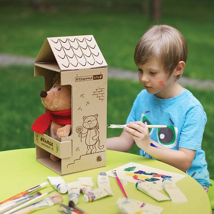În plus, vine ambalat într-o cutie specială din carton ecologic, care nu este doar un simplu ambalaj: ea se transformă într-o căsuță de jucărie pe care copiii o pot colora și personaliza, oferind o experiență de joacă interactivă și creativă.