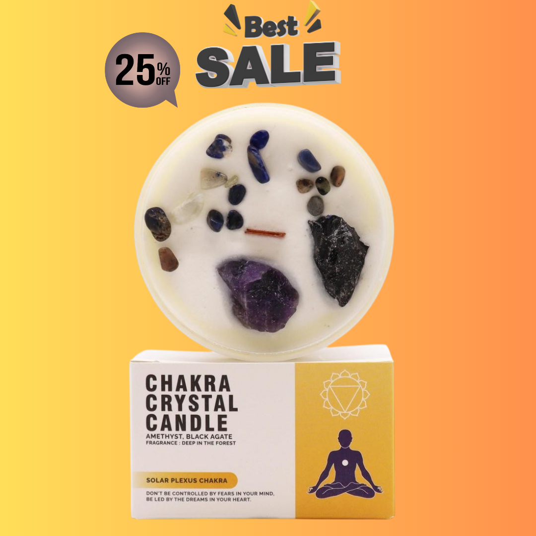 Lumânare Chakra cu Pietre Prețioase - Chakra Plexului Solar - PUTERE, PROTECȚIE,CURAJ