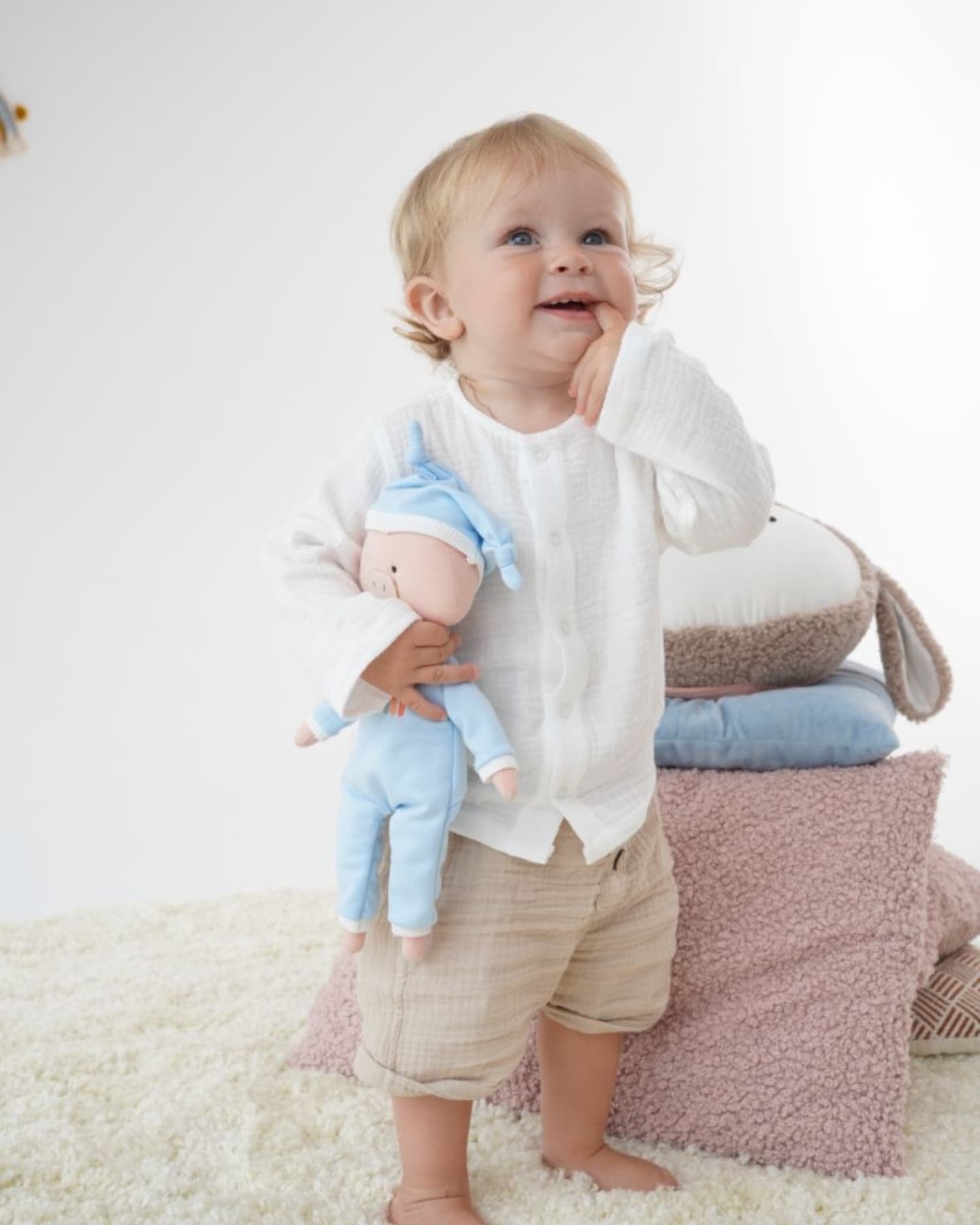 Transformă primele momente ale copilului tău într-o poveste plină de tandrețe cu Nicky, porcușorul de pluș care îți cucerește inima dintr-o privire.