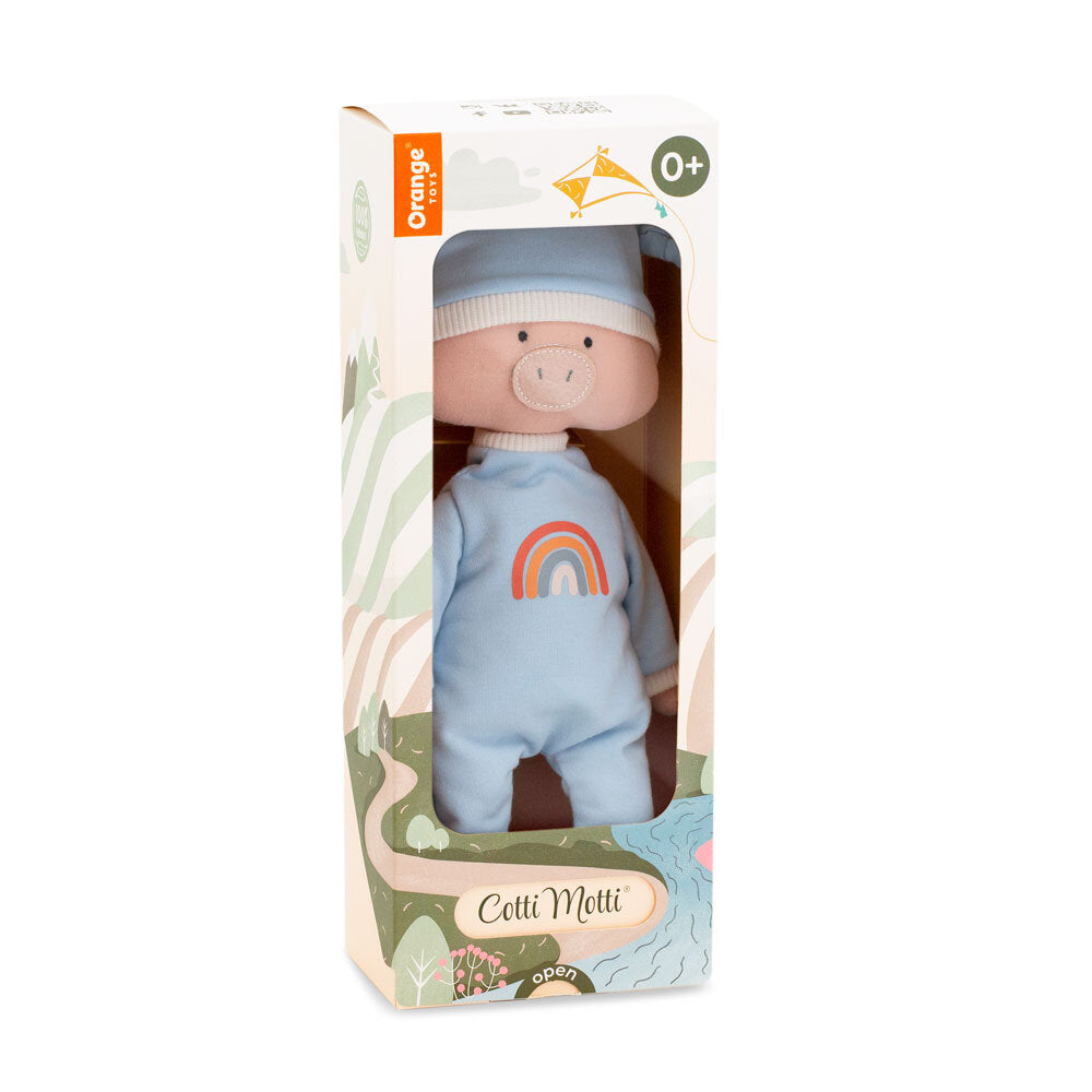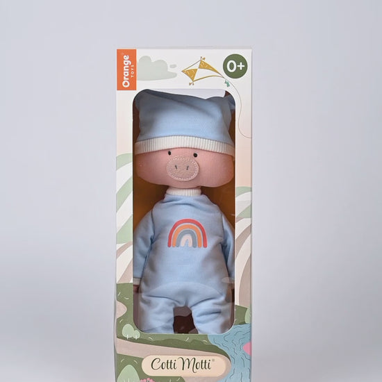 Realizat de brandul Orange Toys, Nicky face parte din colecția Cotti Motti, renumită pentru simplitatea ei adorabilă și pentru grija față de mediu. Fiecare detaliu este gândit astfel încât copilul tău să se poată juca în siguranță: