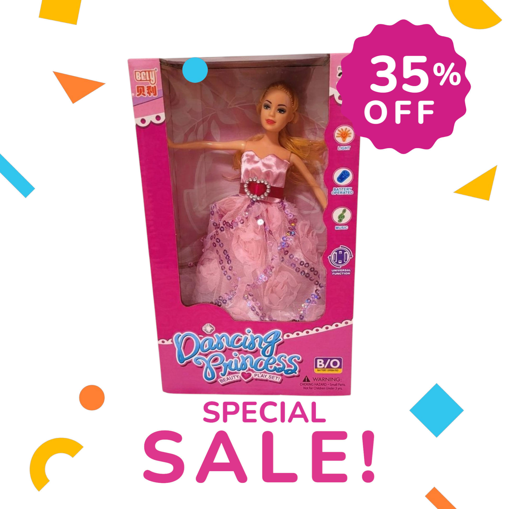 Păpușa dansatoare – Prințesa cu funcții electrice este jucăria perfectă pentru fetițele care adoră magia, lumina și mișcarea. Cu o rochiță elegantă și luminoasă, păpușa dansează și luminează, oferind un adevărat spectacol de culoare și sunet.