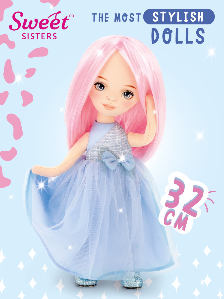 Billie într-o rochie albastră de satin – Păpușă de Pluș Premium Sweet Sisters (32 cm)