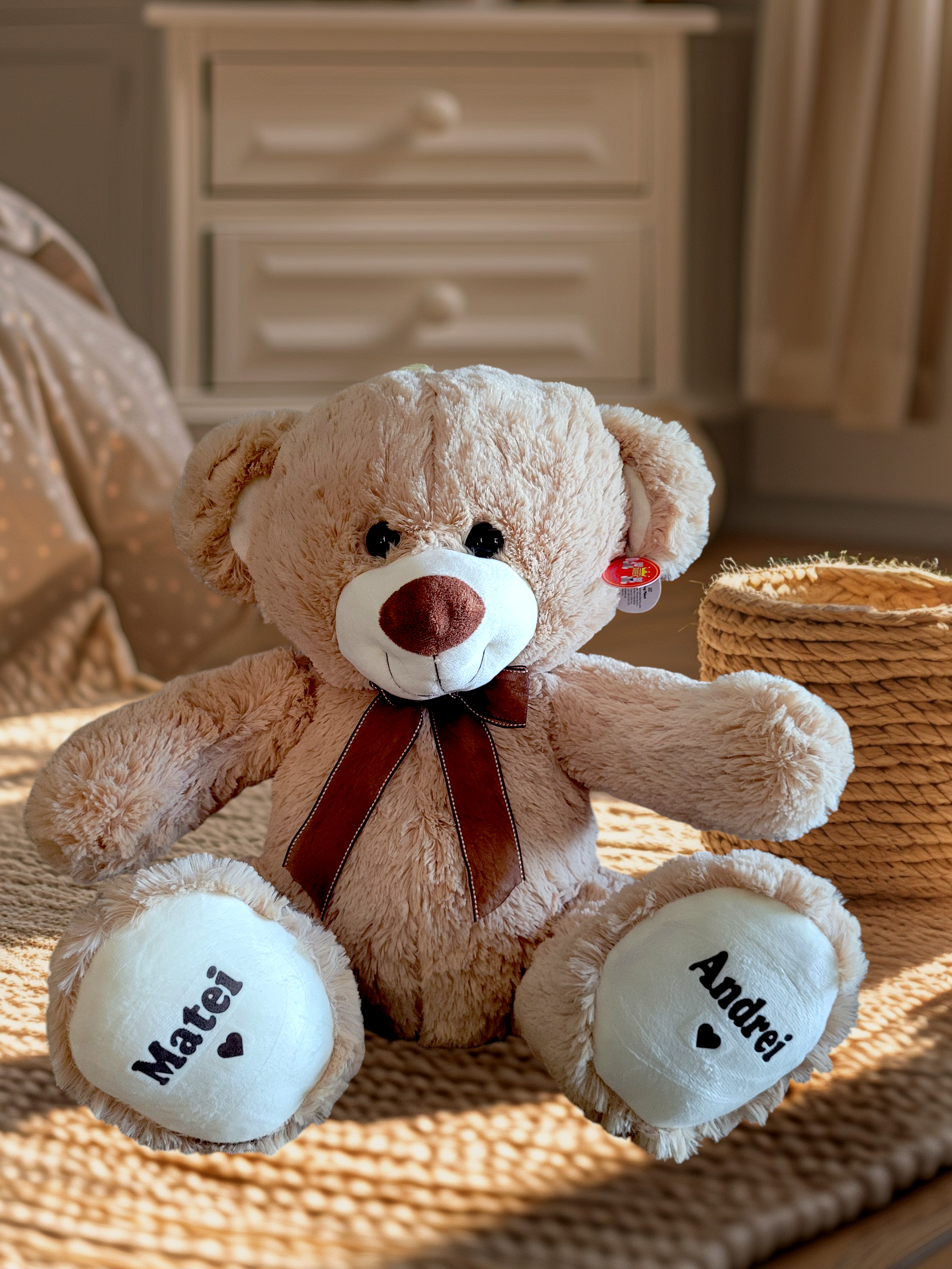 Ursuleț de pluș cu panglică, personalizat pe talpă, 45 cm