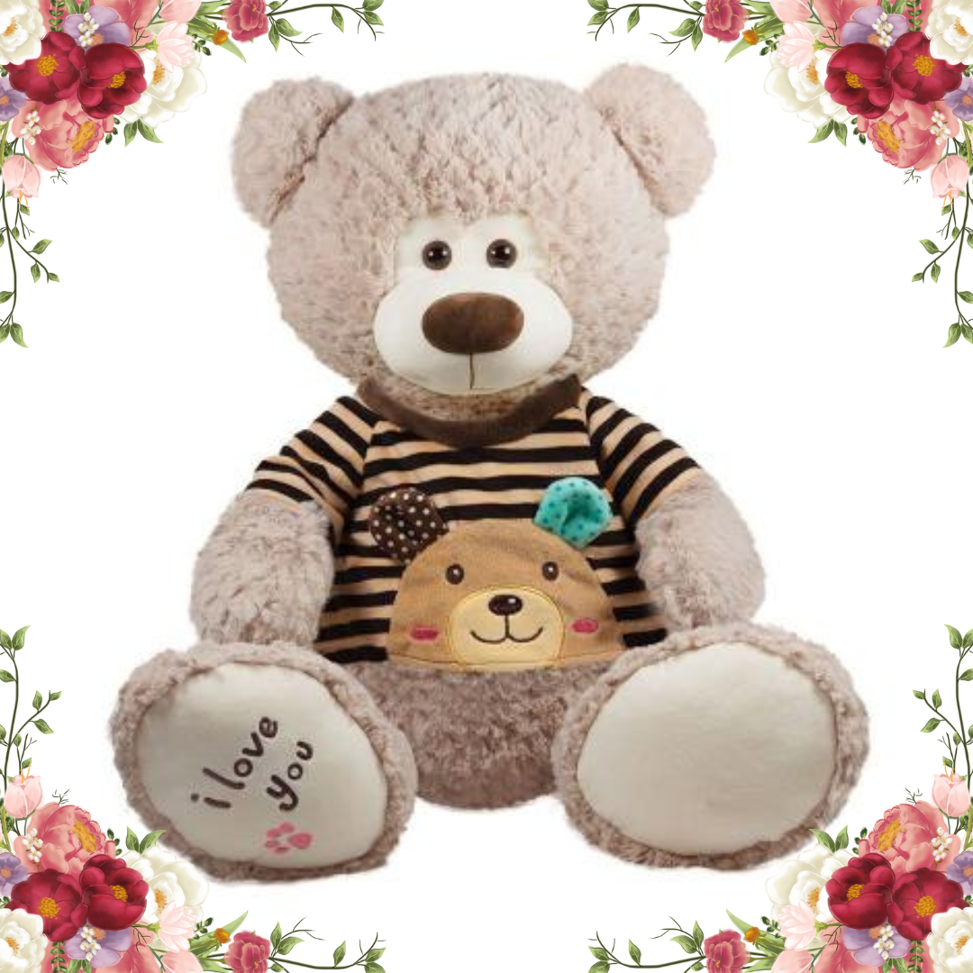 Oferă un cadou cu suflet – un ursuleț de pluș de 42 cm, moale și prietenos, ideal pentru cei mici, dar și pentru adulții care iubesc lucrurile pline de emoție. Cu o inimioara delicata, acest ursuleț poate fi personalizat cu nume sau mesaj pe tălpiță, devenind astfel un dar cu adevărat unic.